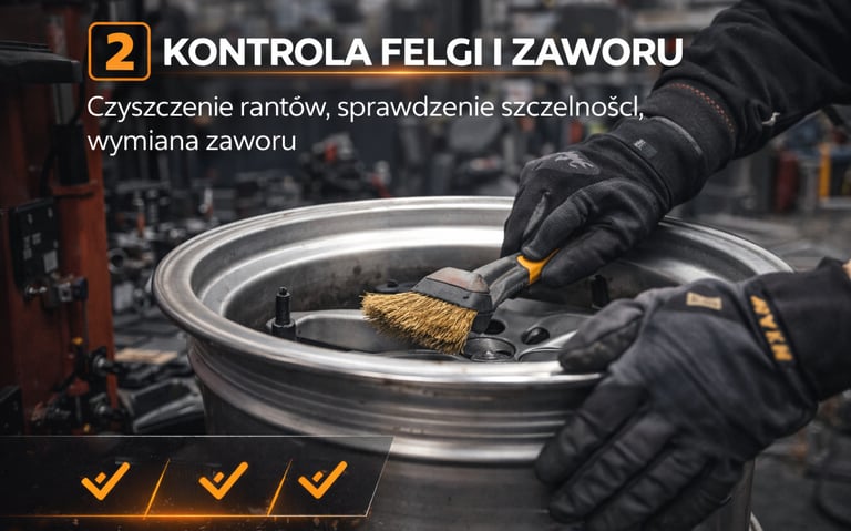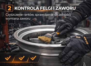 Przygotowanie felgi oraz sprawdzanie elementów niezbędnych do późniejszej funkcjonalności całego koła.