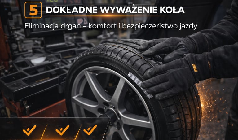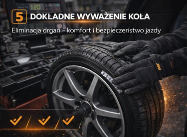 Precyzyjne wyważenie eliminuje drgania kierownicy i nadwozia. Zapewnia stabilność prowadzenia, ochronę zawieszenia oraz dłuższą żywotność opon.