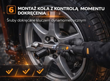 Koła dokręcane kluczem dynamometrycznym zgodnie ze specyfikacją producenta.