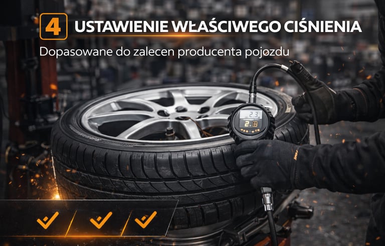 Nie tylko montaż ale i ustawienie właściwego ciśnienia i jego kontrola co jakiś czas gwarantuje bezpieczną i komfortową jazdę